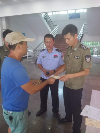 2017年9月18日,交警支队民警在凤凰路山水国际红绿灯处执勤的过程中,发现一名男司机乱吐槟榔水。随后交警支队通知市执法局执法人员进行处理。市执法局特勤大队派出执法人员到场,对该名男司机依法进行处罚,罚款金额50元。