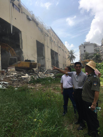 9月22号上午9点,市综合行政执法局王宏宁局长带队,联合天涯区等有关部门,出动执法人员150名,炮机4台,工人30余人,对天涯区蓝天广场C栋过期临建进行拆除。